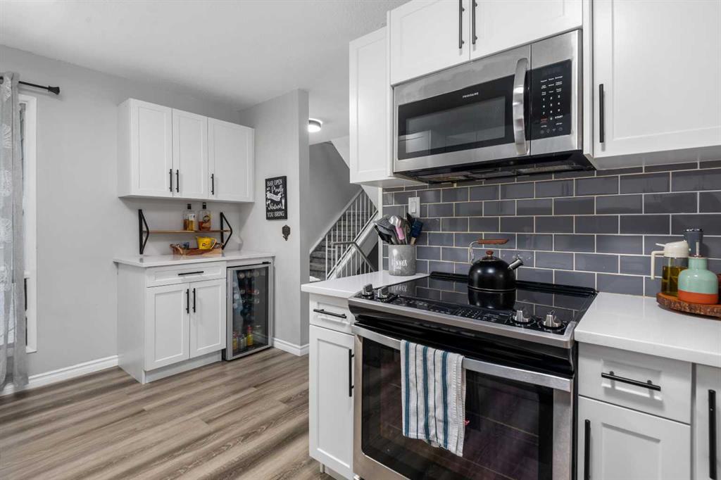 11, 2210 OAKMOOR DRIVE SW.*** WELCOME HOME! THIS GORGEOUS RENOVATED TOWNHOME EXUDES METICULOUS CHARM AND COMFORT WITH OVER 2000 SQ/FT OF LIVING SPACE IN THE HEART OF PALLISER. Step inside, feel ‘at home’ and take notice of the style and comfort that awaits you, so inviting, so beautifully appointed. Featuring newer quality vinyl plank flooring throughout, top to bottom, plus a stunning modern kitchen with newer high-quality stainless-steel appliances, quartz counters, subway tile backsplash, bright lighting, loads of cupboard space and cabinet storage, modern fixtures and accessories. Entertain your guests in the cozy living room with corner wood burning fireplace with gas lighter to the dinner gatherings in the separate formal dining room with beautiful lighting. The upper floor with a spacious and large primary bedroom w/ 2-piece bath, loads of closet space, 2nd and 3rd bedrooms plus an updated full bath with a high-quality cabinet vanity with stone top, undermounted sink and modern fixtures. Additional features include the enormous, fenced back yard with an enormous 24’ x 21’ deck, newer baseboards, rods and draperies, LED lighting, all bathrooms have been updated including low flow toilets, faucets, fixtures, tile, decor and more. The basement is the perfect cozy retreat with family and friends for entertainment and fun in the media/games room, plus extra storage and newer carpets, and a flex room or office behind the dual sliding barn doors. The list of additional improvements and updates include a brand-new HIGH EFFICIENCY FURNACE + HOT WATER HEATER (*2026) for maintaining lower heating costs, newer paint throughout, new fixtures throughout plus so much more. The renovations span from 2021 to present. Exterior updates in the complex include new roof shingles and replacement of the wood siding with new Hardie board throughout the complex. This is the PERFECT HOME in MOVE IN CONDITION that is extremely clean and very well maintained. The complex is extremely well managed and maintained regularly in all seasons, featuring reasonable condo fees and taxes. Don’t miss out on this very rare opportunity to own a terrific home with great access to shopping, playgrounds, schools, bike and walk paths, the C-train and to the mountains!